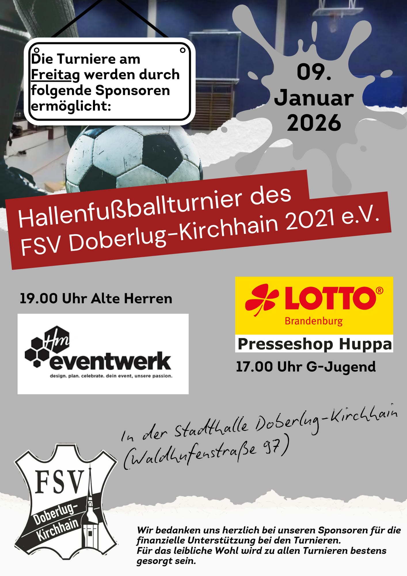 Normalerweise würden wir euch in dieser Ausgabe auch über die demnächst anstehenden Hallenturniere informieren. Eine Durchführung unter den aktuellen Gegebenheiten ist für die Vereine allerdings nicht umsetzbar.