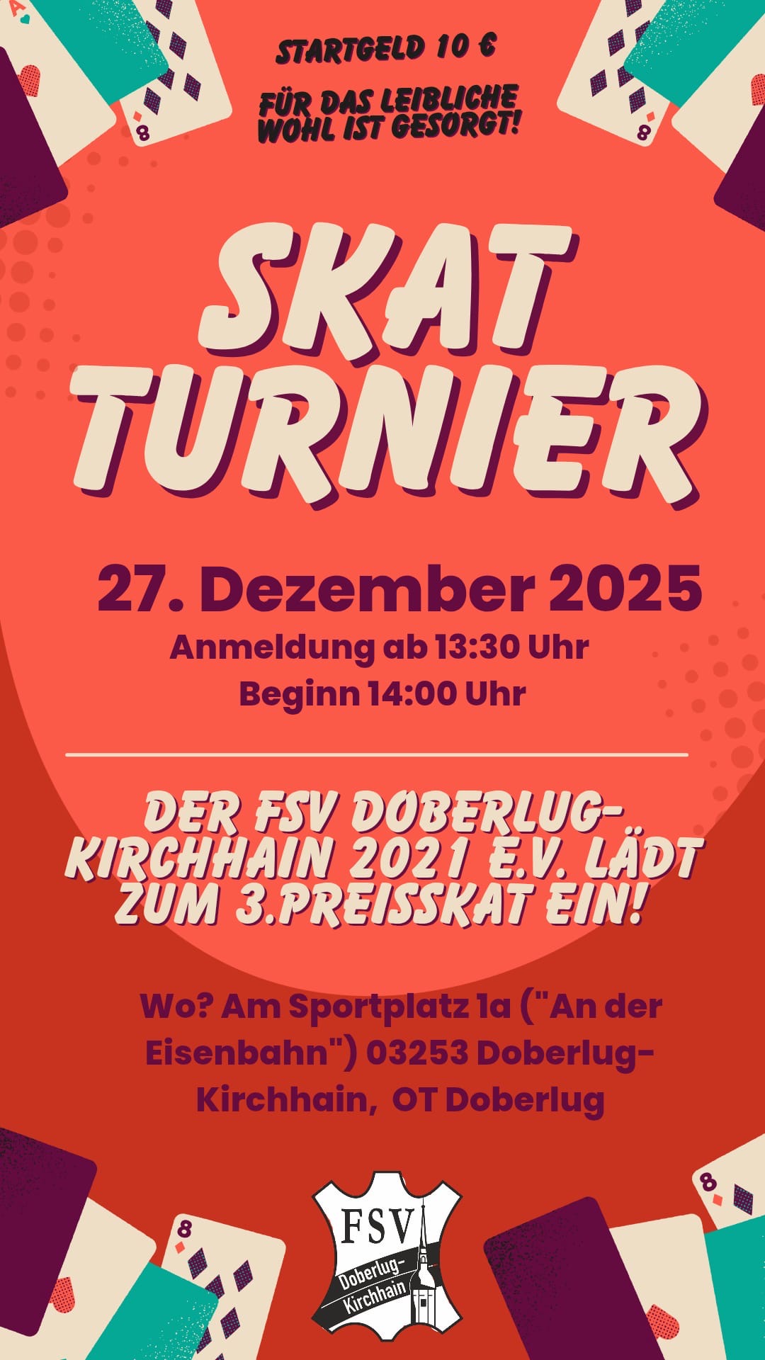 Die Vorstände des FSV Kirchhain e.V. und des FSV Grün-Gelb Doberlug-Kirchhain e.V. planen die jährliche Jahreshauptversammlung. Diese sollen noch im ersten Halbjahr stattfinden. Eine Durchführung im Januar oder Februar ist derzeit nicht vorstellbar.