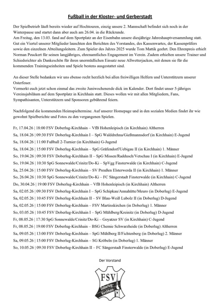 Am 06.März fand wieder ein Treffen zwischen dem Fußball Landesverband Brandenburg und dem FSV Doberlug-Kirchhain 2021 e.V. (Bereich Vorstand & Trainer/ Betreuer) statt