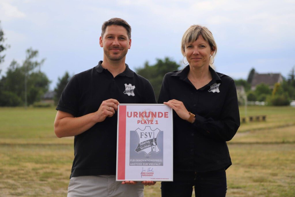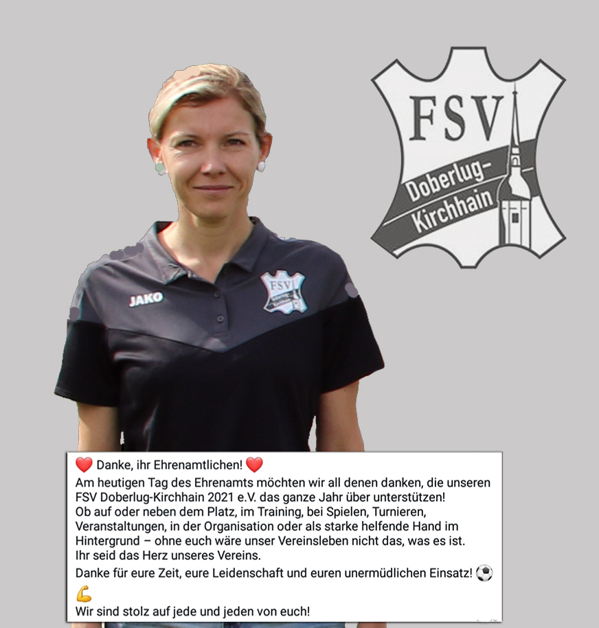 Yvonne erhielt die Ehrenamtsurkunde des Deutschen Fußball-Bundes. Sie ist seit der Gründung des Vereins am 01.04.2021 als Vereinsvorsitzende aktiv. Dabei füllt sie nicht nur die Arbeiten der Vorsitzenden aus, sondern ist auch bei jeglichen Veranstaltungen tatkräftig dabei.