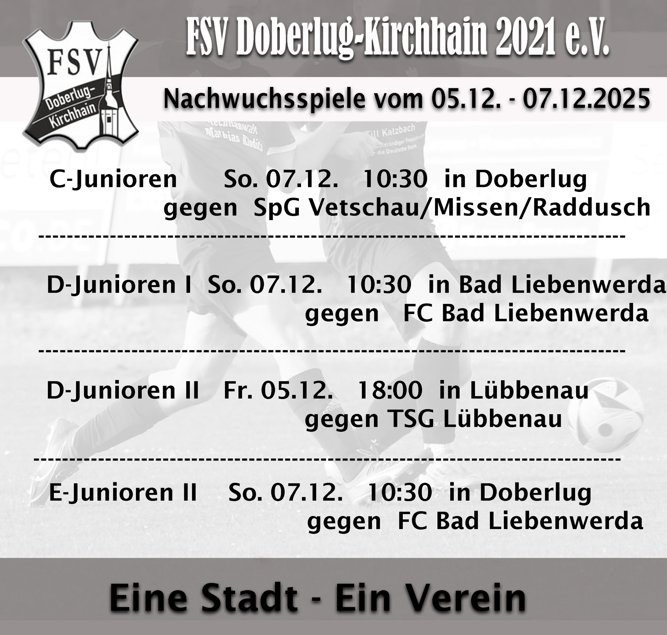 So, 08.11.25 | 10:45 FSV Doberlug-Kirchhain II – Spreewälder SV Lübbenau II (in Doberlug) D-Jugend